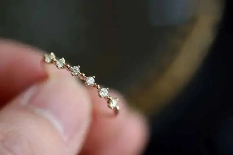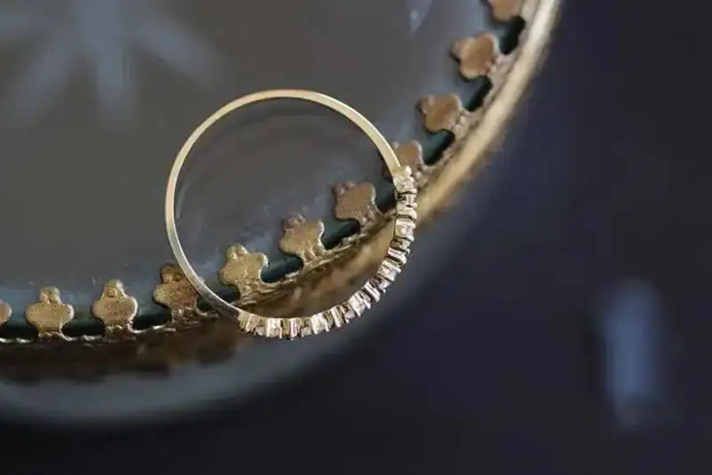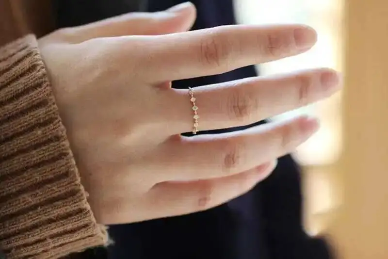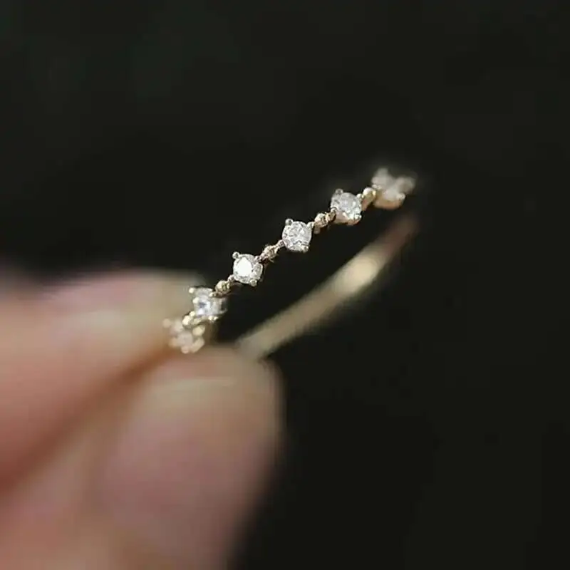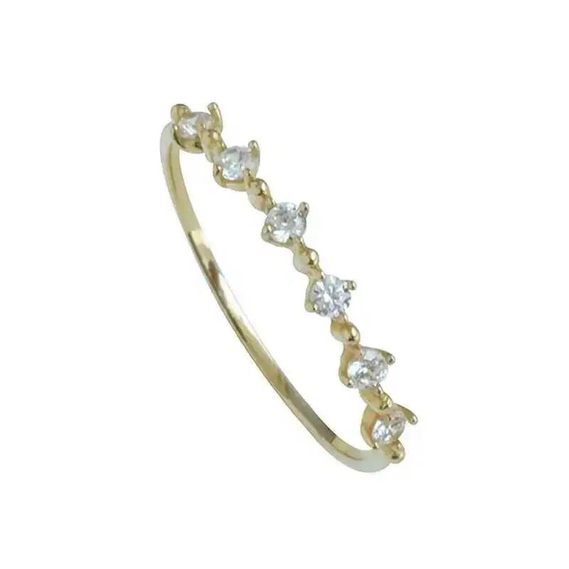 GOLDtutu 14K Gold Ring, Thin Diamond Cz Crystal Stacking Ring, Minimalist Jewelry, kj509