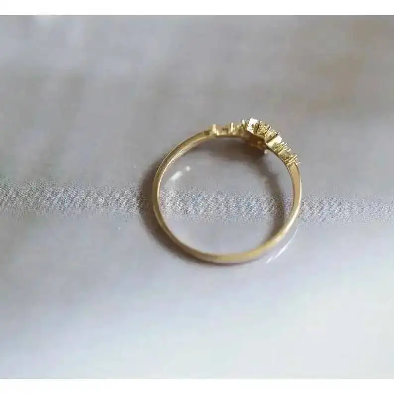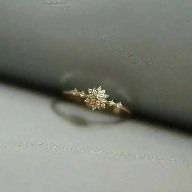 GOLDtutu Snowflake Shape Crystal Ring, Minimalist, Simple Stacking Ring, 9K, Solid Gold, kj505
