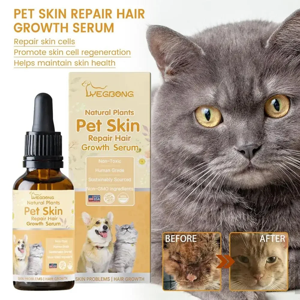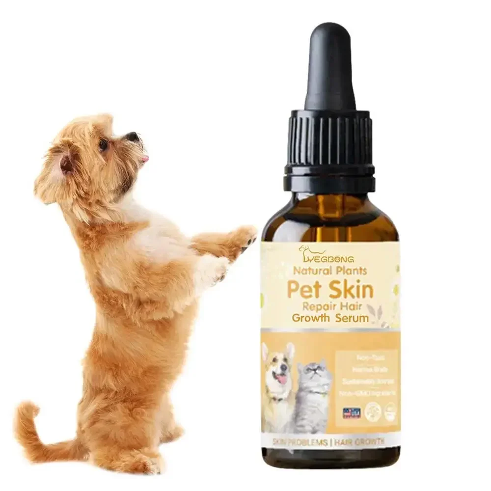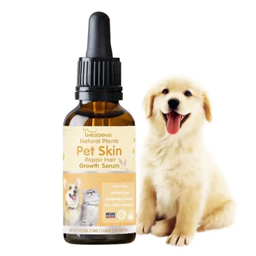 This pet skin repair essence is designed to restore lost skin while promoting healthy pet hair growth.