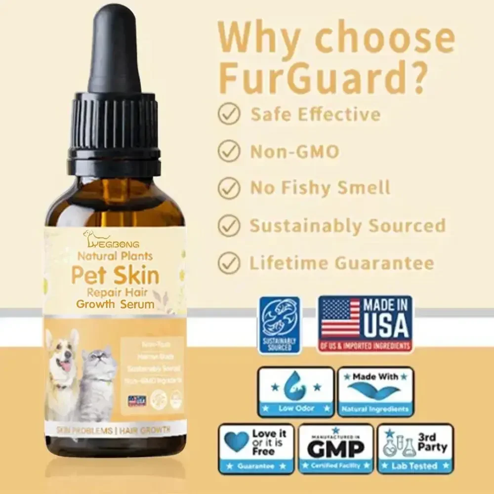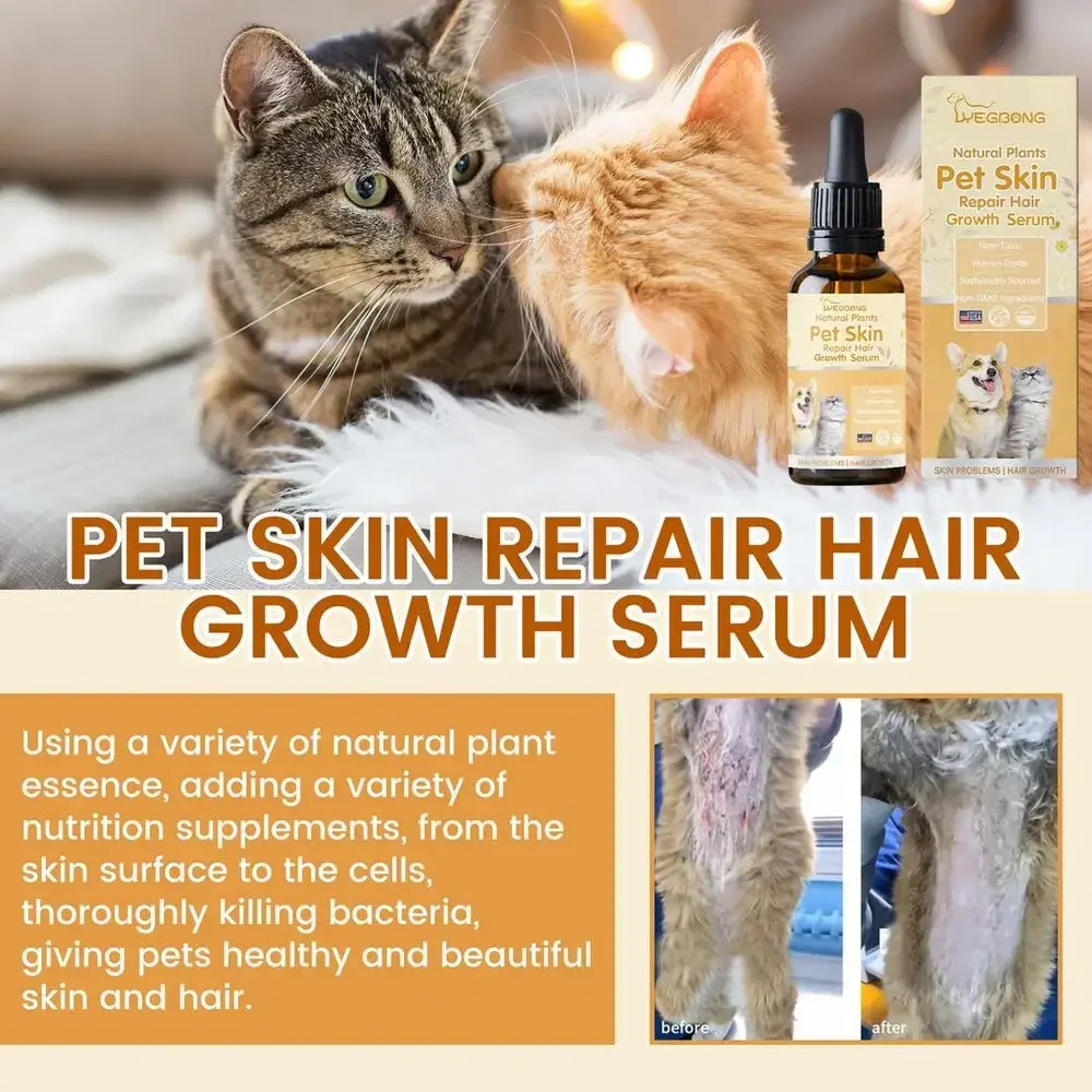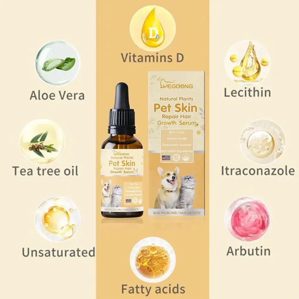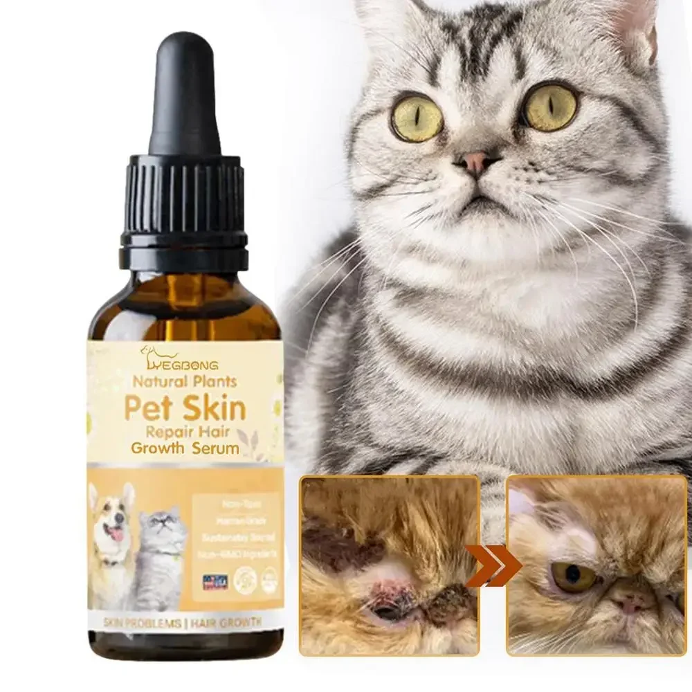 This pet skin repair essence is designed to restore lost skin while promoting healthy pet hair growth.
