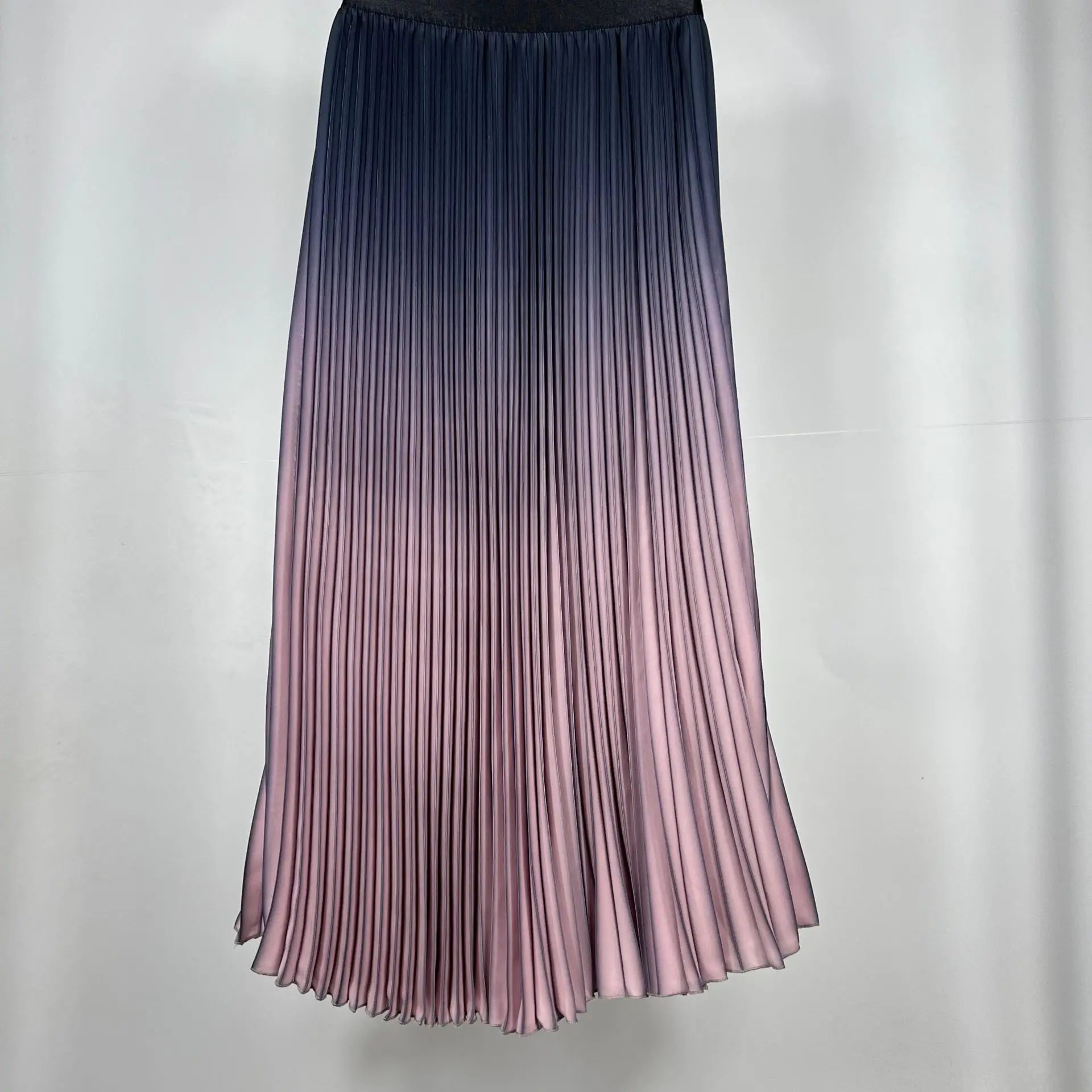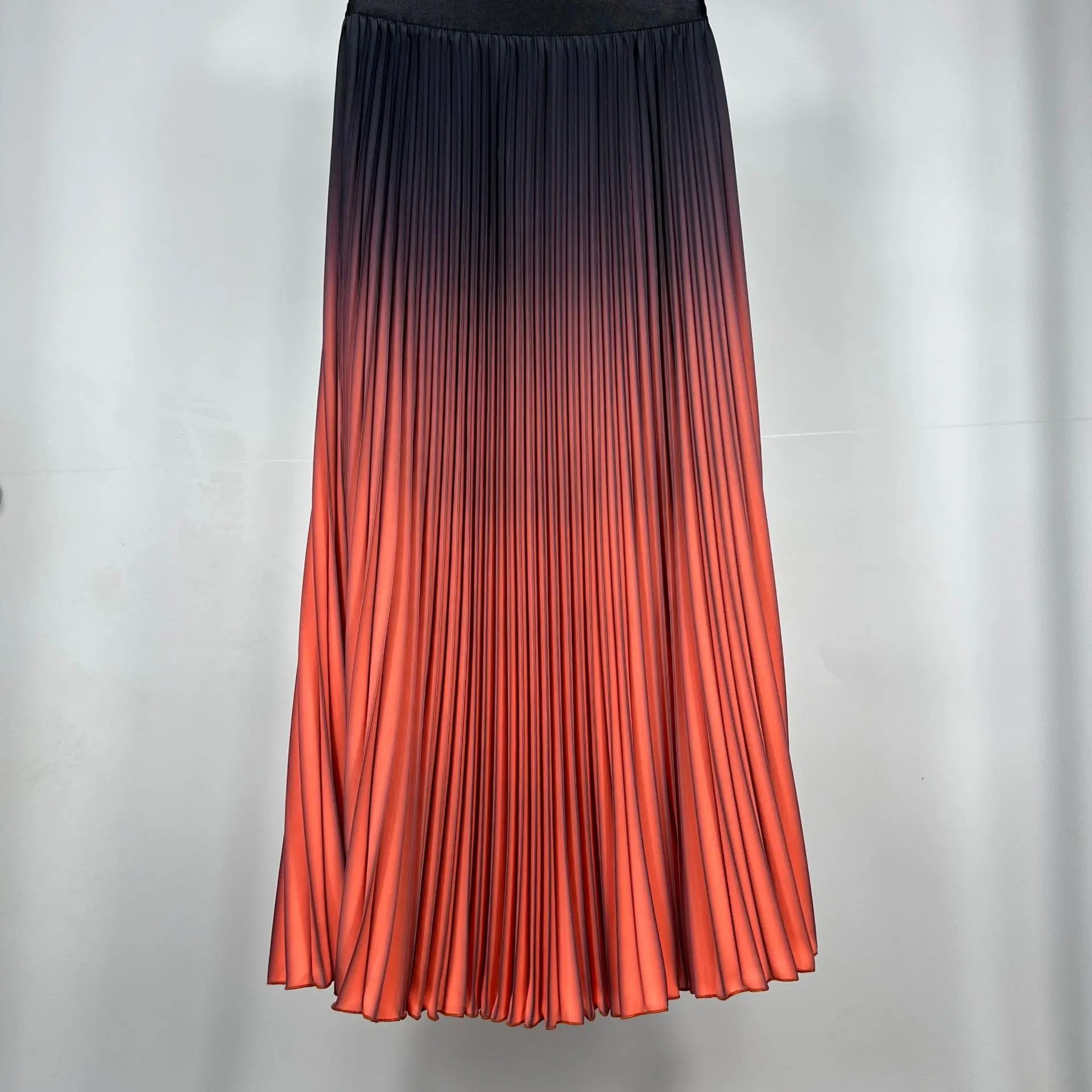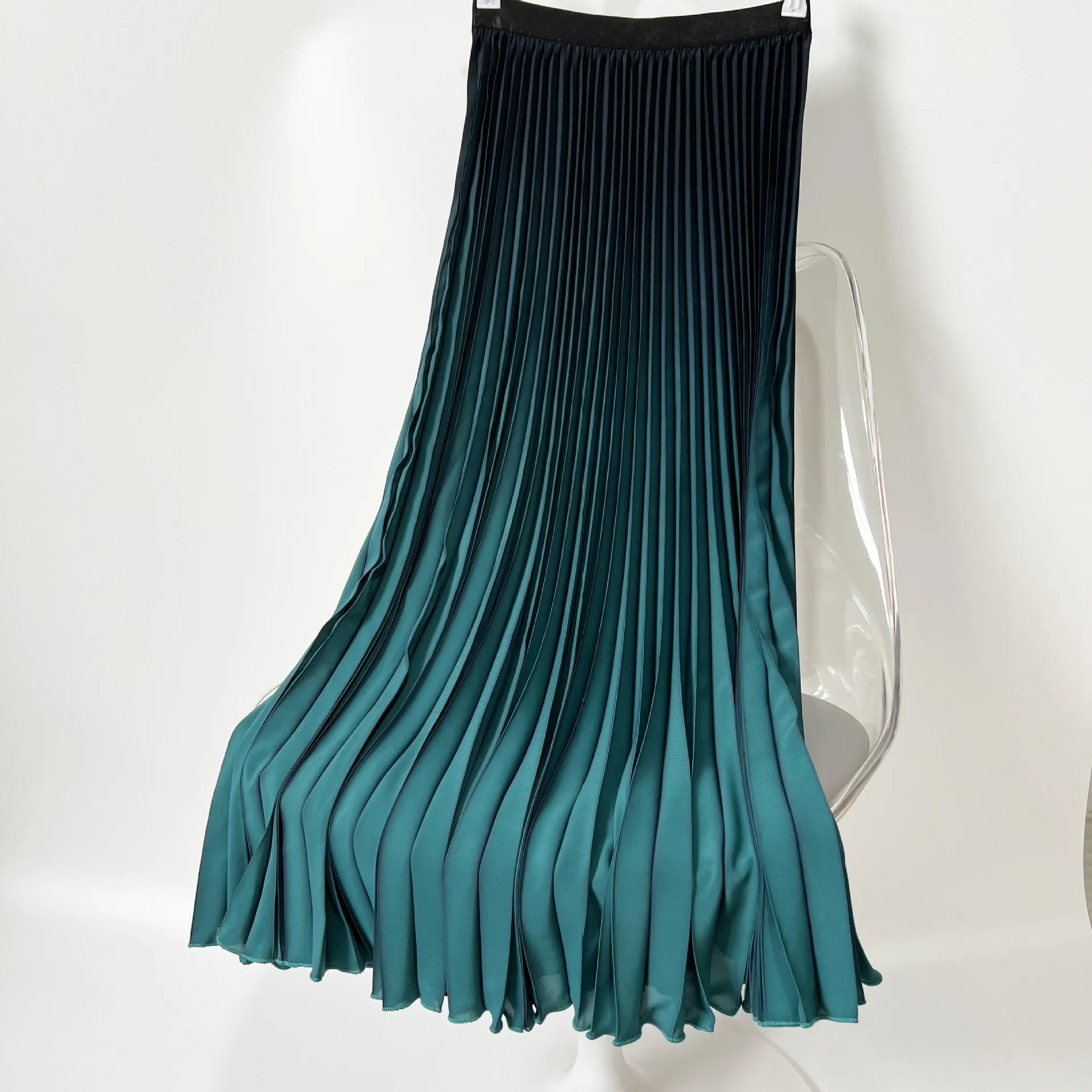 Women Gradient Pleated Midi Skirt 2025 Summer HIgh Street Skirt Women Clothes Elegant